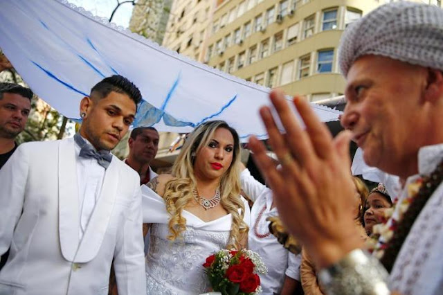 O casamento, organizado pela Coordenadoria da Diversidade Sexual da prefeitura como forma de marcar o Dia Mundial de Combate a LGBTfobia, foi celebrado em uma cerimônia de matriz africana. Eles trocaram juras de amor, beijos, colocaram alianças sob a benção de Oxalá e Iemanjá.